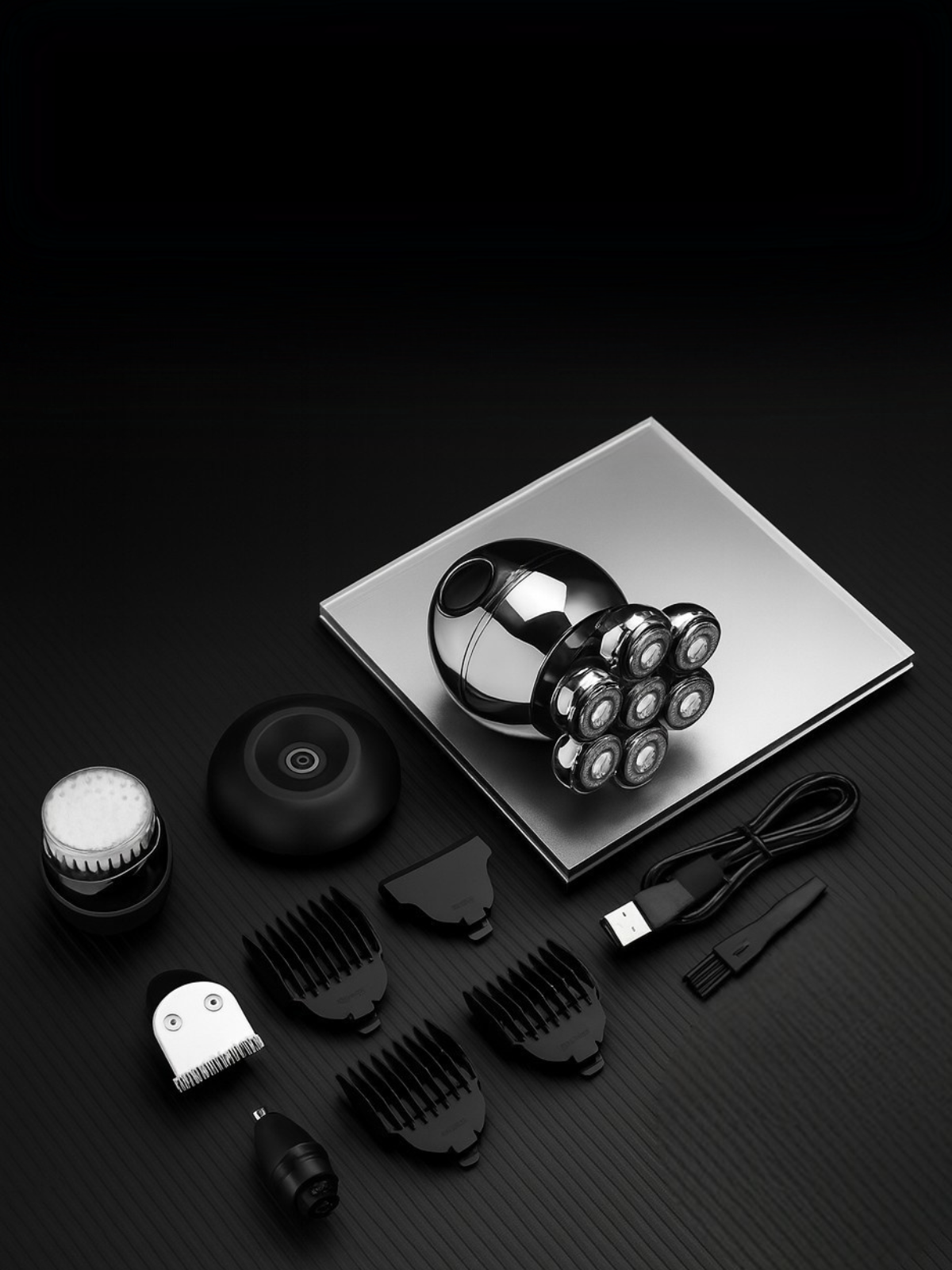 Meet the 7D Precision Shaver, engineered for men who demand speed, comfort, and flawless results. With seven independently floating heads, this waterproof grooming kit adapts to every contour of your face and scalp for a clean, effortless shave in half the time. From trimming beards and sideburns to tackling nose and ear hair, exfoliating, and cleansing your skin, every detail has been built for precision, performance, and power.